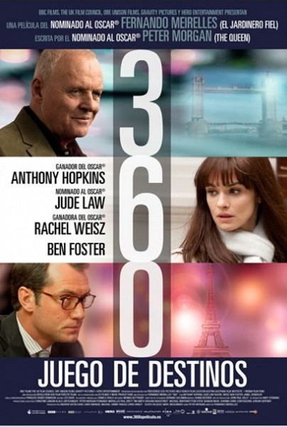 Cuando ves que entre el reparto del film se encuentran Anthony Hopkins, Jude Law y Rachel Weisz comienzas a sentir curiosidad. Después lees una sinopsis en la que se dice que es un: “Moderno caleidoscopio de amor y relaciones que unen a personajes de diferentes ciudades y países en un thriller intenso y conmovedor sobre la vida romántica en el siglo 21”. Entonces piensas que la película pinta muy bien. Miras el tráiler y no te atrae mucho pero crees tiene potencial así que decides ir al cine a ver la película en cuestión: 360 – Juego de destinos… Leer toda la Crítica