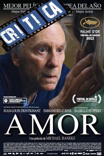 Amor es una obra maestra magníficamente dirigida y profundamente dolorosa, sobre la resistencia de los vínculos emocionales que formamos con otras personas, sobre la pérdida del ser querido y la dureza de ser conscientes del futuro que nos espera. La historia de estos dos ancianos nos rompe el corazón y lo deja hecho pedazos. Y, completamente devastados, nos levantamos de la butaca para darnos cuenta una vez más, de que hemos sido testigos de otra magna creación del gran Michael Haneke.