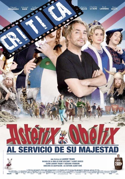 Reparto: Gérard Depardieu (Obélix), Edouard Baer (Astérix), Fabrice Luchini (Julio César), Catherine Deneuve (Cordelia la Reina de Inglaterra), Guillaume Gallienne (Jolitorax), Vincent Lacoste (Goudurix), Valérie Lemercier (Srta. Macintosh), Charlotte Lebon (Ophélia), Jean Rochefort (Lucius Fouinus).