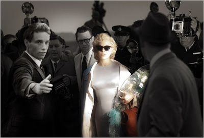 La actriz da tantísimos matices a su personaje, sin caer nunca en la simple imitación, que parece que estemos ante la verdadera Monore, una joven de 30 años insegura, tímida, de compleja naturaleza, un animal dañado que odiaba tanto como deseaba la vida que tenía y que manejaba su popularidad a base de alcohol y pastillas que la ayudaban a no estallar en mil pedazos. La jovial risa de Williams hipnotiza al espectador, su mirada seductora desarmará a algunos y su fragilidad y tormento nos obligará a intentar comprenderla y, como su compañero de reparto, querer consolarla. A esa mujer bellísima que no creía en su talento, caótica tanto en el plano laboral como en el personal (por aquella época vivía un atormentado matrimonio con Arthur Miller) y que solo cuando de verdad se dejaba llevar por sus naturales instintos interpretativos lograba brillar con luz propia, y como ninguna otra, bajo focos y claquetas. Eddie Redmayne acompaña a la actriz como Colin Clark, chico para todo en el rodaje y personaje enamorado de la artista en el que ella ve a un verdadero amigo y es bajo el prisma y recuerdo de Clark desde el que está narrada la historia (basada en su propio libro) siendo el actor el mayor lastre de la cinta, pues le falta carisma para interpretar a un personaje tan protagónico y con tantas escenas en las que lo único que nos interesa es Michelle Williams.
