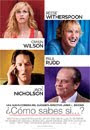 ¿Cómo sabes si…? (James L. Brooks) – Actores: Jack Nicholson, Reese Witherspoon, Owen Wilson, Paul Rudd.Sinopsis: Lisa Jorgenson (Reese Witherspoon) es una antigua atleta que, a sus 27 años, siente que está envejeciendo y que ya ha pasado su mejor momento físico. Sin embargo, de repente su vida sentimental se convierte en una aventura, ya que un ejecutivo en crisis (Paul Rudd) comienza a competir con ella y con su actual novio (Owen Wilson), un jugador de béisbol depresivo.